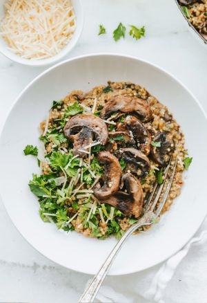 Roasted King Oyster Mushrooms with Pumpkin and Spelt